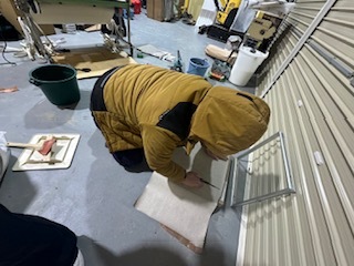 新事務所のトイレのクロスを従業員達で貼りました☆