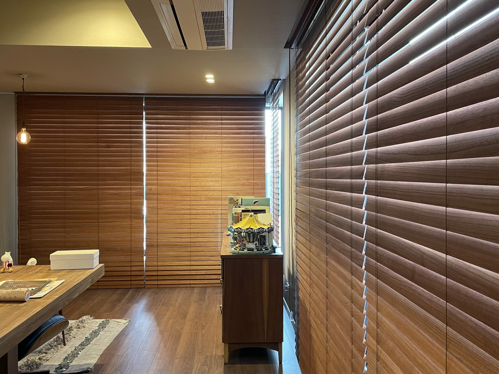 ブラインドカーテンの 材質はアルミ、木製、布製などさまざまで、素材によって雰囲気や機能性が異なります。