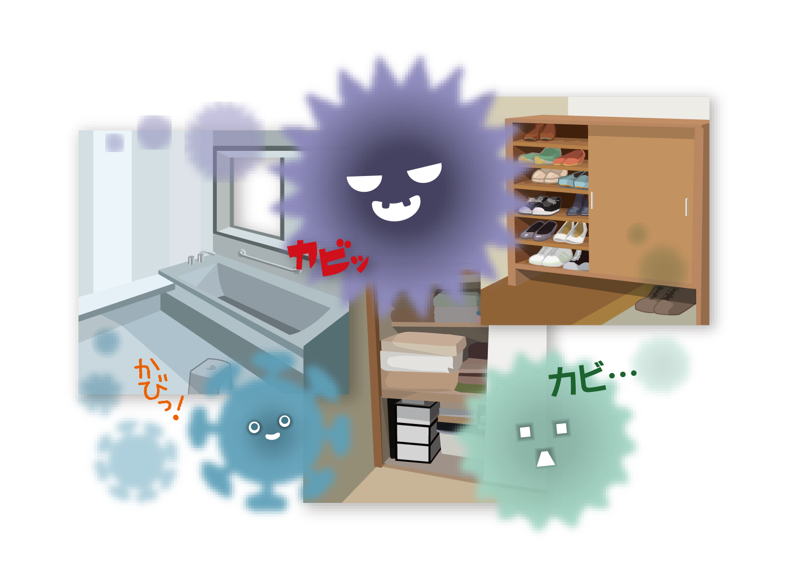 換気が不十分だと、室内の湿気がたまりやすくなり、カビの発生を促進することになります。