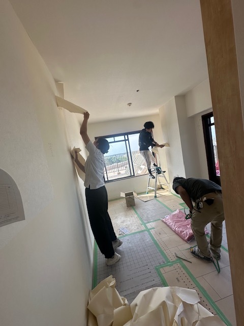 クロス屋さんがいてたので、めくり少し手伝わせてもらいましたヽ(^o^)丿