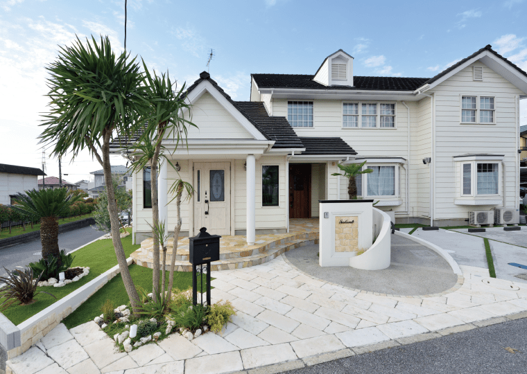 • メリット:ヤシの木やタイル、ライトアップを取り入れると夜でも映える外構に。プールやジャグジーを設ける例もあります。