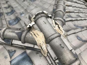 実はこれは屋根の漆喰が劣化し滑落して屋根の上に乗っている状態なんです。