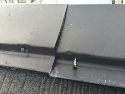 この状態で放置が続くと、雨が降るたびに雨水が釘穴をつたい、野地板に雨水が浸入し雨漏りの原因となります。